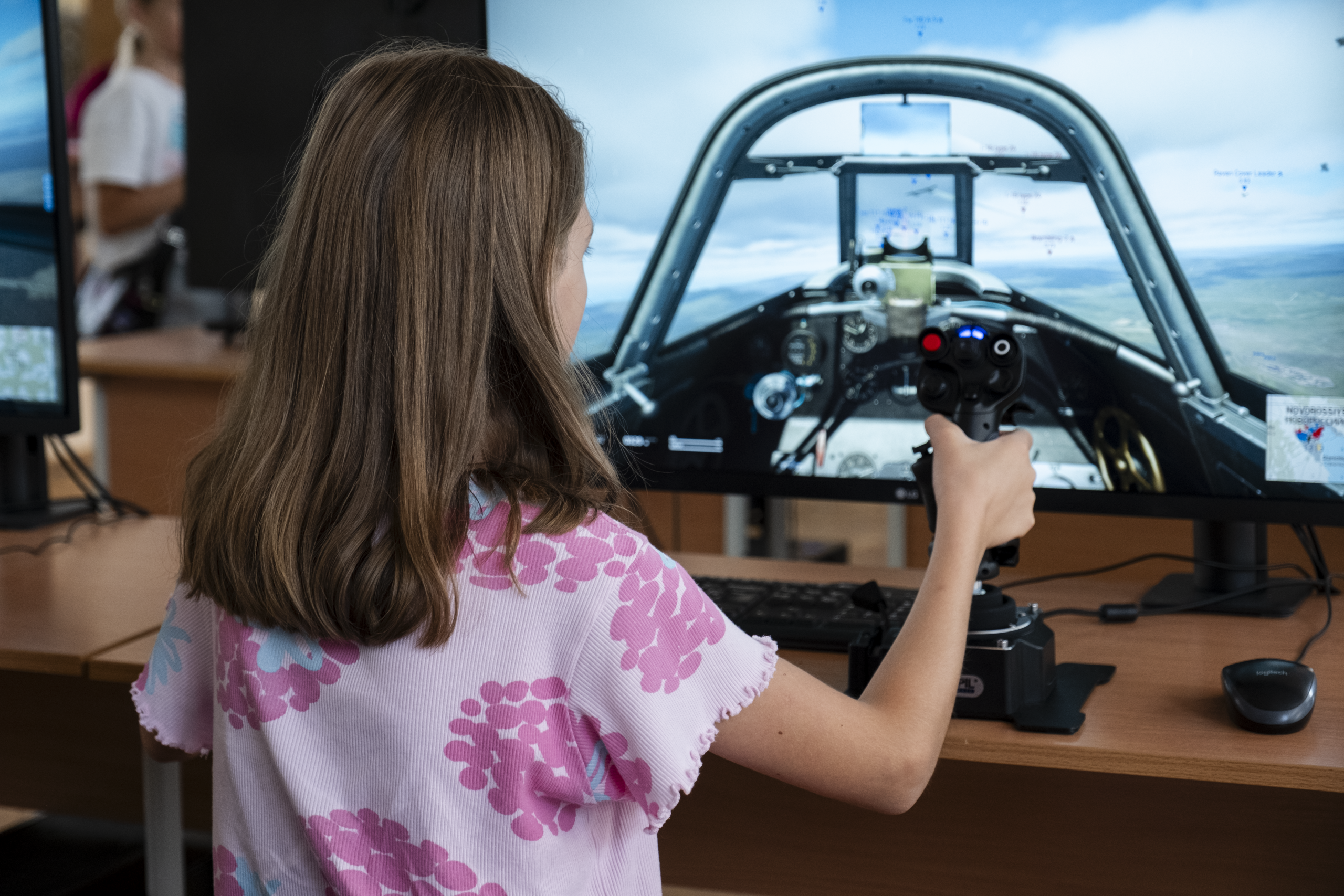 Полётный класс оснащён пультами, джойстиками и системой управления, адаптированной под детей.